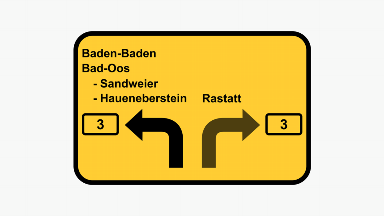 Aus Richtung: Karlsruhe-Basel: in Richtung "Baden-Baden"rechts abbiegen auf die B3